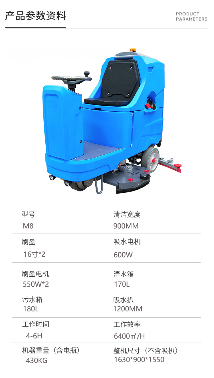 坦洁驾驶式洗地机M8款属于小型驾驶式洗地机,普遍应用在工厂车间、小区、车站、医院、商超等场所。
